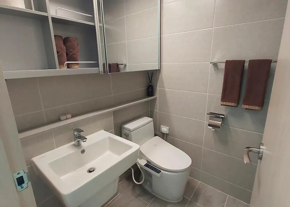 Songdo Halla Westernpark-Seaviewroom Hotel-바다전망客室で化粧室、化粧室 と衛星放送チャンネルの薄型テレビを利用できます。